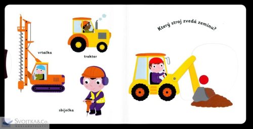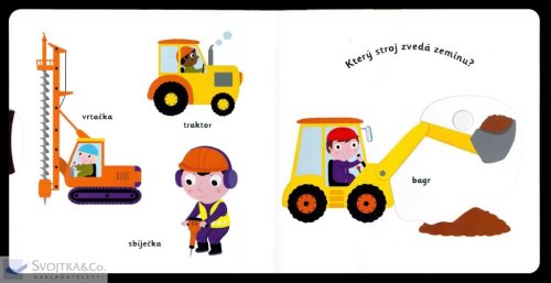 Který stroj nabírá do lžíce zeminu? Co se sype z míchačky? Jak je vysoký jeřáb? Pojmenuj vše, co se nachází na stavbě, a objevuj svět kolem sebe. Pestrobarevné ilustrace a posuvné prvky v tomto leporelu rozšiřují dětskou slovní zásobu zábavnou formou. Pohyblivé elementy v této knize rozvíjí jemnou motoriku dítěte a přispívají k živosti ilustrací. Knížka s prvky Montessori. České vydání publikace nakladatelství Nathan.