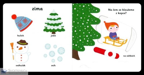 Poznávej roční období a pojmenuj vše, co během nich můžeš vidět! Leporelo pro nejmenší děti s posuvnými prvky a pestrými ilustracemi.