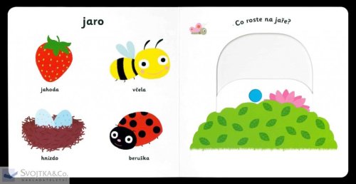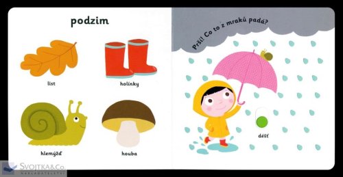 Co roste na jaře? Kam se jezdíme v létě koupat? Co to padá z mraků na podzim? A co v zimě? Na čem se v zimě budeme klouzat ze zasněženého kopce? Nauč se rozdíly mezi čtyřmi ročními obdobími a pojmenuj vše, co můžeš vidět na jaře, v létě, na podzim a v zimě. Pestrobarevné ilustrace a posuvné prvky v tomto leporelu rozšiřují dětskou slovní zásobu zábavnou formou. Pohyblivé elementy v této knize rozvíjí jemnou motoriku dítěte a přispívají k živosti ilustrací. Knížka s prvky Montessori. České vydání publikace nakladatelství Nathan. Počet stran: 10 Vazba: Leporelo Rok vydání: 2017 ISBN: 978-80-256-2129-5 Ilustrační video