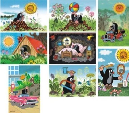 Minipuzzle s motivem Krtečka obsahující 54 dílků. Velikost složeného obrázku 19,8 x 13,2 cm.