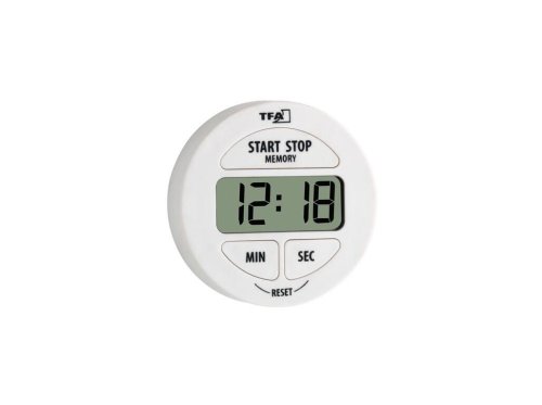 rozměry: pr. 55 x 17 mm hmotnost: 27 g rozsah: doba až 99 minut, 59 sekund materiál: guma barva: bílá s magnetem pro upevnění montáž na zeď nebo postavení na stůl včetně 1 x LR44 baterie