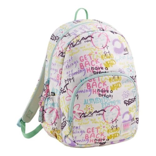 Moderní, lehký batoh v jemném barevném motivu určený začínajícím teenage holkám. Dělení na dvě kapsy poskytuje dostatek prostoru pro školu a osobní drobnosti. Recyklovaný odolný materiál prodlužuje životnost, zesílené výztuhy zespodu chrání batoh před poškozením a znečištěním.•rozměry: 400 × 280 × 160 mm•materiál: recyklovaný polyester (rPET)•2 kapsy na zip, síťovaná kapsa na drobnosti•2 otevřené boční kapsy na láhev