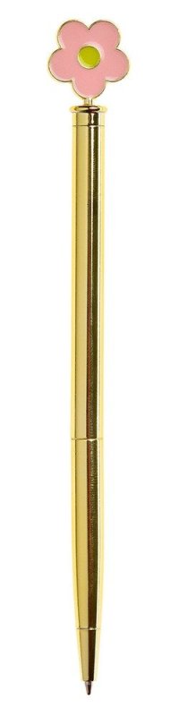 Luxusní kovové pero ve zlaté barvě s roztomilým motivem květiny na koncovce. Rotační mechanismus pro zapnutí pera, inkoust na olejové bázi pro plynulé psaní. Baleno v dárkové krabičce.<br> <br> • rozměry pera: 155 × O 8 mm<br> • modrá náplň<br> • rotační mechanika pro zapnutí pera<br> • motiv květiny na koncovce<br> • luxusní vzhled