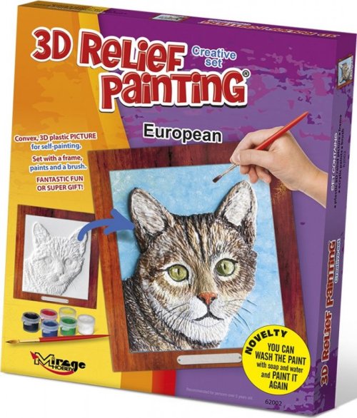 Sada obsahuje 3D plastový reliéfní obrázek 15x17 cm, papírový rámeček 19x21 cm, akrylové barvy (6 ks) a štětec.