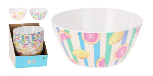 průměr: 25 cm objem: 4 l materiál: melamin mix motivů: ovoce, ovoce a pruhy