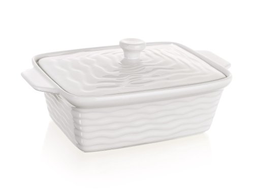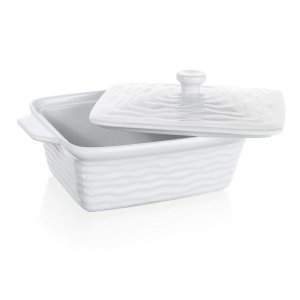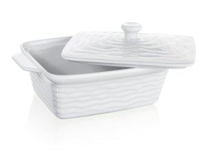 Keramická obdélníková zapékací forma CULINARIA White s víkem a praktickými držadly pro snadnou manipulaci. Vnější strana formy má vlnkový reliéf. Keramické formy rovnoměrně absorbují teplo a postupně ho uvolňují, díky čemuž se pokrmy dobře propečou.
