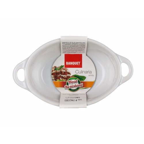 Oválná zapékací forma CULINARIA White. Keramická oválná zapékací forma CULINARIA White s praktickými držadly pro snadnou manipulaci. Vnější strana formy má vlnkový reliéf. Keramické formy rovnoměrně absorbují teplo a postupně ho uvolňují, díky čemuž se pokrmy dobře propečou.