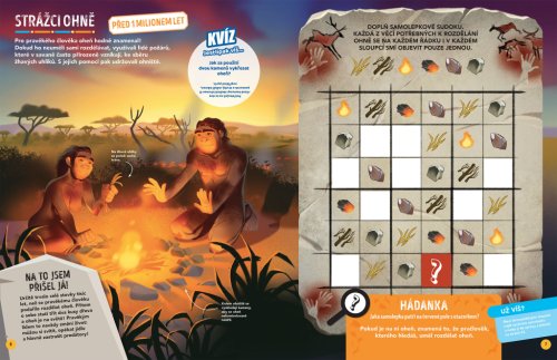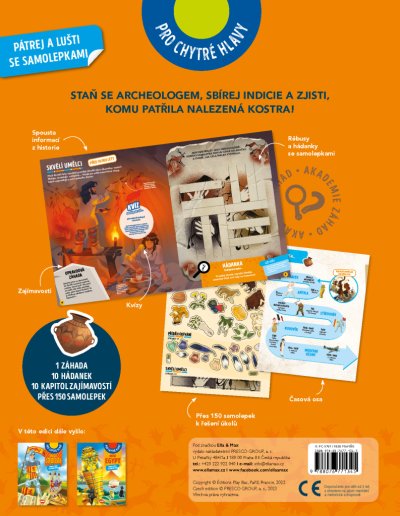 Vydejte se na dobrodružnou misi s krycím názvem PRAVĚK! Akademie záhad, jež řeší hádanky staré stovky, tisíce, ba miliony let, má pro vás zapeklitý případ. Tamní vědci objevili kostru, která podle prvních výsledků bádání patřila jednomu z pradávných předků dnešního člověka. Pokračujte v archeologickém šetření, identifikujte stopy zanechané pravěkými lidmi, sbírejte indicie… Jen pokud se dokážete úspěšně popasovat se všemi rébusy, kvízy a úkoly, zjistíte, komu nalezené kosti patřily! Máte na to přes 150 samolepek, a navíc spoustu poutavých informací a zajímavostí z historie.