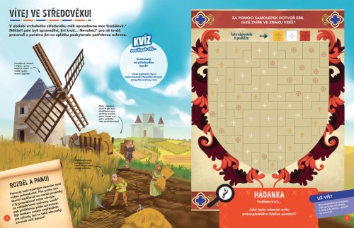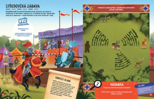 Vydejte se na dobrodružnou misi s krycím názvem STŘEDOVĚK! Akademie záhad, jež řeší hádanky staré stovky, tisíce, ba miliony let, má pro vás zapeklitý případ. Šest šlechticů se nemůže dohodnout, komu patří hradní panství, které měl v držení jejich předek. Vypravte se na středověký hrad, zjistěte více o zdejších šlechticích a určete, kdo jej má po právu získat. Jen pokud se dokážete úspěšně popasovat se všemi rébusy, kvízy a úkoly, dokážete zabránit válce o dědictví! Máte na to přes 150 samolepek, a navíc se dozvíte spoustu poutavých informací a zajímavostí z historie.