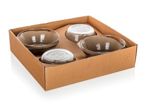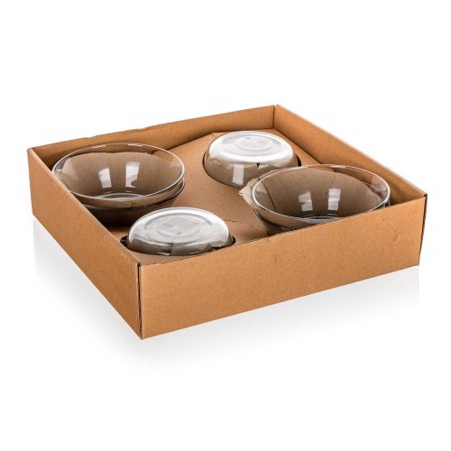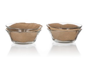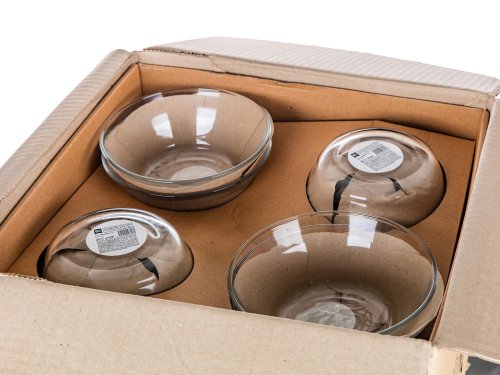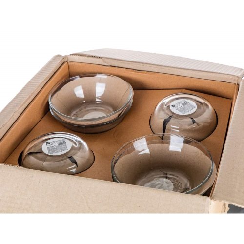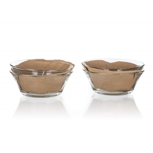 Skleněná miska je vyrobena z čirého, hladkého skla a svým kónickým tvarem umožňuje skládat misky na sebe. Jednotlivé kusy do sebe perfektně zapadají a zabírají minimum místa v kuchyni.
