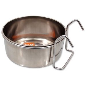 Nerezová šroubovací miska pro ptactvo a malá zvířata.