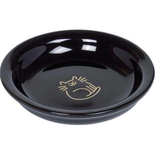 Elegantní černý keramický talířek Nobby Golden Cat poslouží jako nádoba na vodu nebo na krmivo. Dno zdobí potisk zlaté sedící kočky. Kvůli kovovým prvkům není miska vhodná do myčky ani mikrovlnky. Rozměry (cca): Ø 14 × 2 cm Objem: 100 ml Materiál: keramika Barva a vzor: černá, zlatá kočka