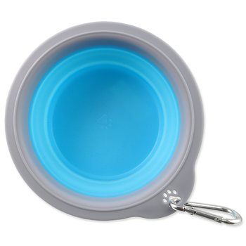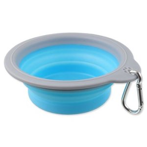 Cestovní miska skládací. Vyrobena z odolného materiálu silikonu, snadno složitelná do kompaktních rozměrů. Vhodná na cesty a dlouhé procházky. Nepřijímá pachy a snadno se udržuje. Odolná proti nárazům a mrazu. Obsahuje karabinu pro uchycení na batoh nebo oblečení.