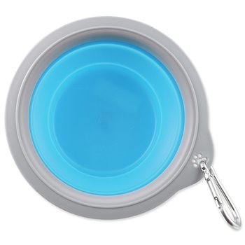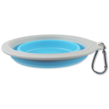 Cestovní miska skládací. Vyrobena z odolného materiálu silikonu, snadno složitelná do kompaktních rozměrů. Vhodná na cesty a dlouhé procházky. Nepřijímá pachy a snadno se udržuje. Odolná proti nárazům a mrazu. Obsahuje karabinu pro uchycení na batoh nebo oblečení.