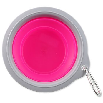 Cestovní miska skládací. Vyrobena z odolného materiálu silikonu, snadno složitelná do kompaktních rozměrů. Vhodná na cesty a dlouhé procházky. Nepřijímá pachy a snadno se udržuje. Odolná proti nárazům a mrazu. Obsahuje karabinu pro uchycení na batoh nebo oblečení.