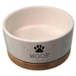 Miska Dog Fantasy keramická bílá WOOF s podtáckem 13x5,5cm, 400ml