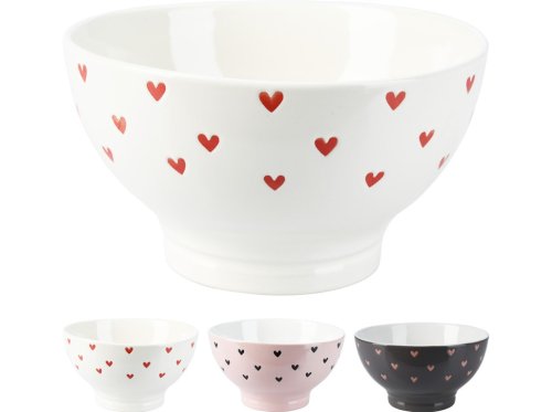 Krásná keramická miska s motivem srdíček, která přinese do vašeho stolu nádech lásky a barev. Skvělá na cereálie nebo jako dekorace.
