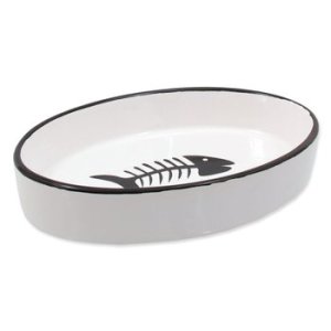 Keramická miska pro kočky s motivem rybky.