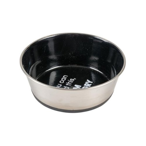 Miska Duvoplus Brushed Fix I’m Hungry na krmivo nebo vodu pro psy a kočky je vyrobena z broušené nerezové oceli. Dno má potažené gumou, aby na podlaze neklouzala a nedělala hluk. Vhodná pouze pro ruční mytí. Rozměry (cca): Ø 19,8 cm Objem: 920 ml Materiál: nerezová ocel Barva: stříbrná, černá