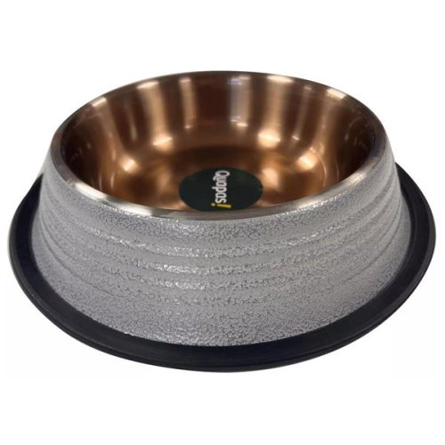 Miska na krmivo nebo vodu pro psy a kočky je vyrobená z nerezové oceli s měděnou povrchovou úpravou. Spodní okraj je opatřený gumovým lemem, který zabraňuje klouzání a snižuje riziko rozlití. Vhodná pouze pro ruční mytí. Rozměry (cca): Ø 23 cm Objem: 700 ml Materiál: nerezová ocel Barva: bílá