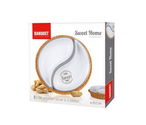 Miska sada 2díl. pr. 20,5 cm, SWEET HOME, v košíku, keramika / proutí.