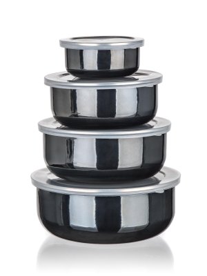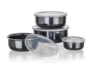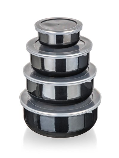 Miska sada 8díl. (10, 14, 16, 18 cm + 4 víčka) smalt METALIC Black.