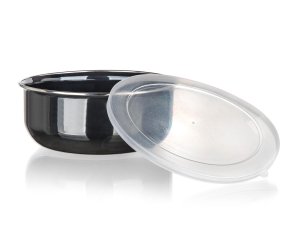 Sada smaltovaných misek s plastovými víky METALIC Black. Misky jsou určeny pouze pro uchovávání potravin, nejsou určeny na vaření.