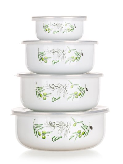 Miska sada 8díl. (10, 14, 16, 18 cm + 4 víčka) smalt OLIVES.
