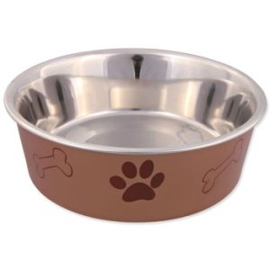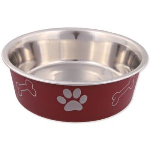 Miska nerezová s plastovým povrchem a protiskluzovým kroužkem, který zabrání posouvání misky po podlaze.