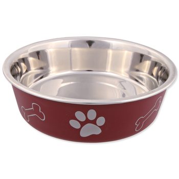 Miska nerezová pro psy s plastovým povrchem. S protiskluzovým kroužkem, který zabrání posouvání misky po podlaze.