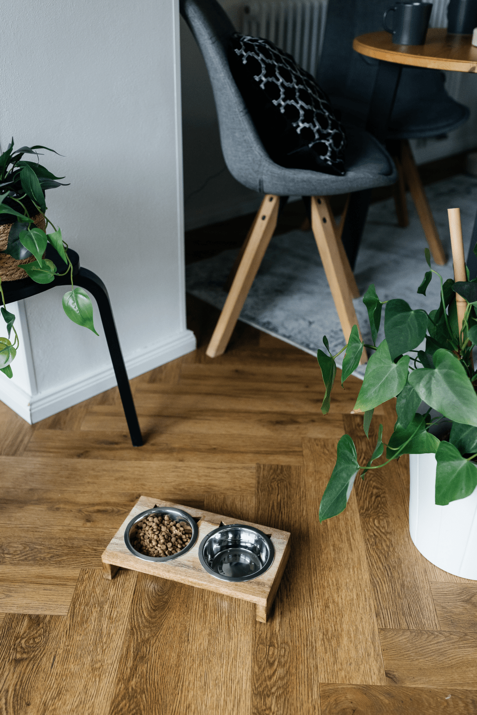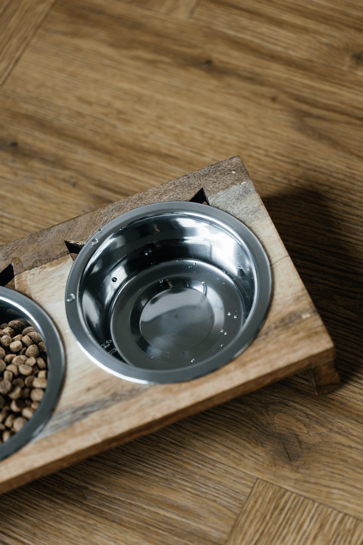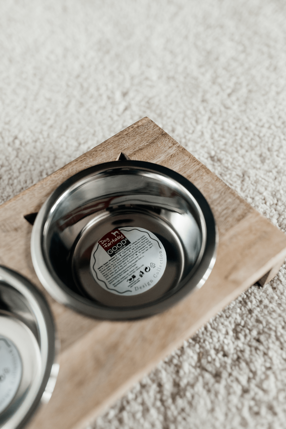 Praktická sada dvou nerezových misek v elegantním dřevěném stojánku. Ideální řešení pro podávání vody i krmiva, které spojuje funkčnost a moderní design.