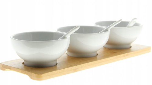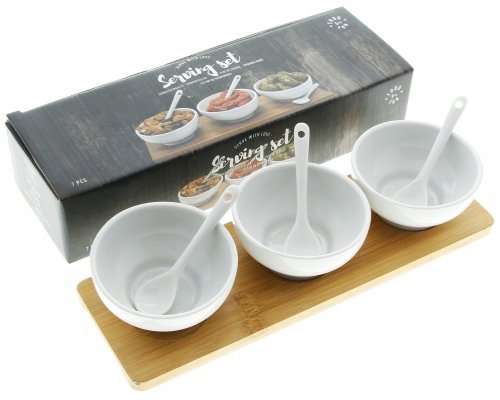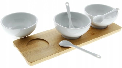 Toto útulné prkénko s miskami je ideální pro podávání omáček!- Dřevo/porcelán- Hnědá Bílá- 7 dílná