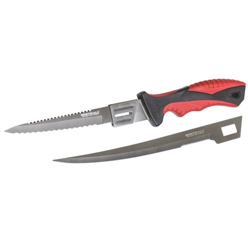 Filetovací nůž, na kterém si můžete ostří vyměnit přesně podle toho, co chcete se svým úlovkem udělat. Je zde klasická filetovací čepel, filetovací čepel s malou pilkou, kterou lze použít na malé kůstky a zubatá čepel pro zpracování jeseterů a přeřezání velkých kostí.
