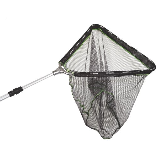 Skládací podběrák s gumovou sítí a kovovým křížem.