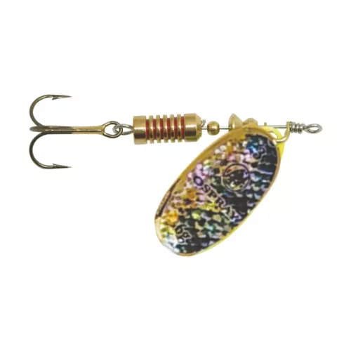 Rotační třpytka pro nejnáročnější rybáře. Je určena spíše do klidných řek, rybníků a přehrad. Točí se i při velmi pomalém tažení. Značkový VMC trojháček je velmi ostrý a pevný, nehrozí tedy, že by se ryba při záběru nepíchla.