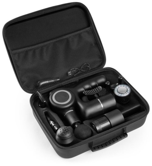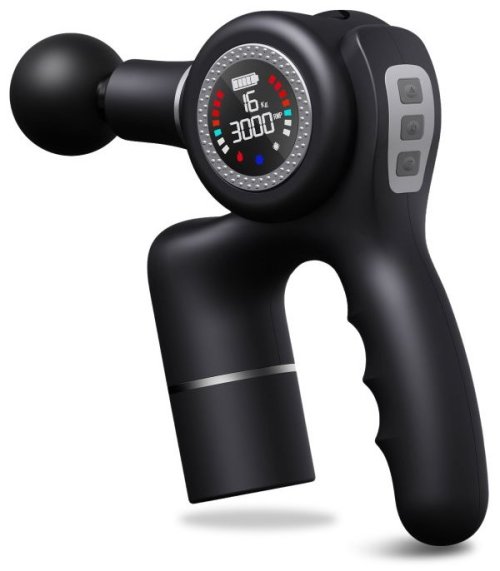 Ruční masážní zařízení aplikuje koncentrované tlakové pulsy hluboko do svalové tkáně. Tyto pulsy eliminují svalové uzly, pomáhají uvolnit svaly, zlepšovat krevní oběh a zvyšovat rozsah pohybu. Správné použití masážní pistole může rychle zkrátit dobu regenerace po výkonu a zároveň snížit napětí a případnou bolest svalů. Na výběr je z devíti vyměnitelných hlavic a rychlosti v rozsahu 1600 až 3000 úderů za minutu. O napájení se starají dvě vyměnitelné dobíjecí baterie s celkovou kapacitou 2× 2000 mAh, které zajistí až 24 hodin provozu (12 hodin/ baterii).