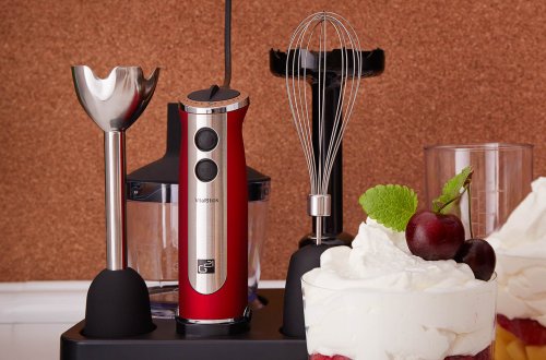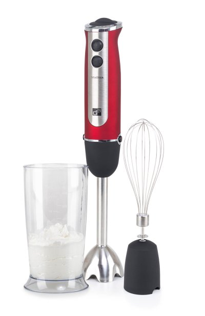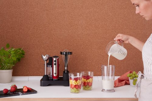 Ano, příslušenství, kterým jsme tyčový mixér VitalStick vybavili, je skutečně bohaté. Základní tyčový nástavec můžete nahradit nerezovou metličkou na sníh nebo nástavcem na přípravu hebkého, hladkého pyré. O stojanu jsme se už zmínili, o nádobách ne, že? K VitalSticku jsou hned dvě. Kvalitní, transparentní s měrnou stupnicí. A spolu s ostatním příslušenstvím je samozřejmě můžete mýt i v myčce.