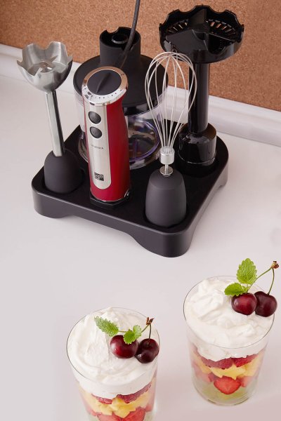 Celé tělo mixéru je kovové. Krásný design a promyšlený tvar vám umožní absolutně pohodlnou manipulaci i držení. Mysleli jsme na všechno, takže oceníte i vstřícně umístěné ovládací prvky a praktický stojan, do kterého mixér i s příslušenstvím snadno umístíte.