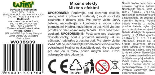Mixér s efekty. Velikost 10x10x19,5 cm. Světelné a zvukové efekty. 2xAA nejsou součástí.