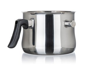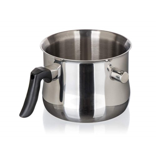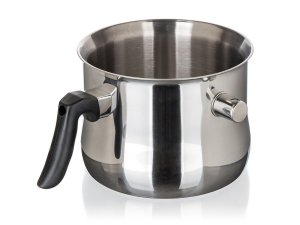 Nerezový mlékovar AKCENT. Je dvojstěnný, z kvalitní nerezové oceli s píšťalou. Nádobu otvorem pro píšťalu naplníte vodou. Píšťalka při dosažení bodu varu začne pískat. Mlékovar je tak ideální pro vaření pokrmů, které se snadno připalují jako mléko, pudink, krupicová a jiná kaše, omáčka, čokoláda. Píšťalka upozorní na vařící se vodu uvnitř - mléko a další pokrmy se tak vlastně vaří ve vodní lázni a nemají tendenci se tak rychle připalovat.