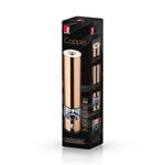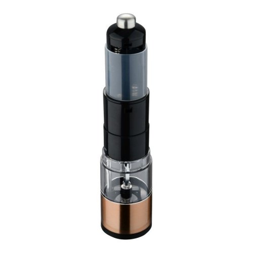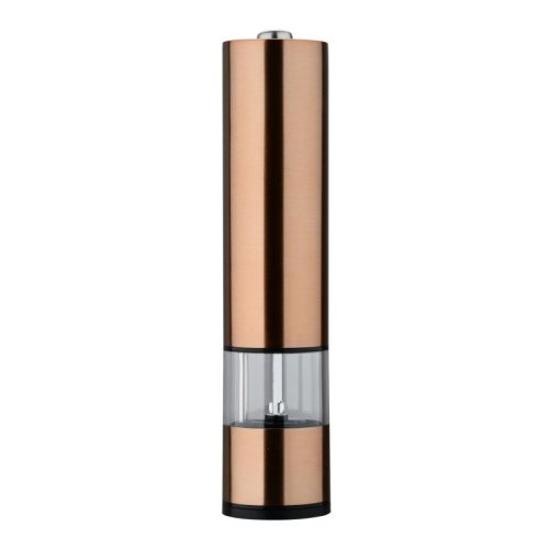 Namelte všechny druhy soli, pepře a dalšího koření v lehkém elektrickém mlýnku Copperly s tenkým a kompaktním designem vyrobeným s pevným a odolným tělem z nerezové oceli. Skládá se z keramického jádra, které se kvůli trvanlivosti nespálí ani nerezaví, zabraňuje pachům nebo změnám chuti koření, snadno se ovládá jednou rukou a také se snadno doplňuje, rozebírá a čistí. Jednoduše naplňte elektrický mlýnek kořením dle vašeho výběru a jediným stisknutím horního tlačítka získáte perfektní mletí pro dochucení jakéhokoli pokrmu. S elegantním designem v měděné barvě můžete ozdobit svůj stůl. Baterie nejsou součástí balení.