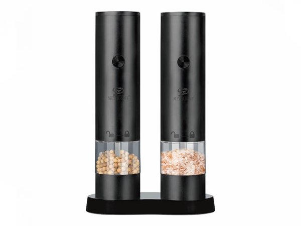 Tato sada dvou moderních elektrických mlýnků je perfektním řešením pro ty, kteří si cení pohodlí a elegance. Tyto mlýnky na baterie melou sůl a pepř. Stačí stisknout tlačítko a mlýnek začne mlít. Mlýnek je vyroben z odolných materiálů – plastu a nerezové oceli – pro dlouhou životnost a estetický vzhled. Nastavitelné mletí vám umožňuje přizpůsobit koření vašim individuálním potřebám. Průhledná nádoba umožňuje sledovat úroveň pálivosti během používání. Ideální do moderní kuchyně a skvělý praktický dárek! Napájení z vestavěné baterie (nabíjecí USB kabel je součástí balení). Nastavitelná jemnost mletí, snadno přizpůsobitelné vašim potřebám. Sada 2ks na sůl a pepř. Rozměry mlýnku: průměr 4.5 cm a výša 19 cm, šířka podstavce 13 cm. EAN 5902738228822