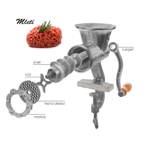 Kvalitní litinový mlýnek na maso s deskou č. 8.
