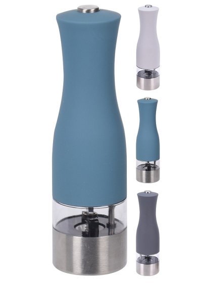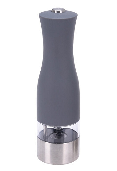automatický elektrický mlýnek na koření- měkčená úprava povrchu pro pohodlnou manipulaci- neklouže v ruce a dobře se tím pádem drží i jednou rukou- lze libovolně nastavit hrubost mletí- vhodný na jakékoliv hrubozrnné koření, ideální na pepř nebo sůl- napájení 6x AAA baterie (není součástí balení)- výška: 20,5 cm- průměr: 6 cm- barva: šedá / nerez
