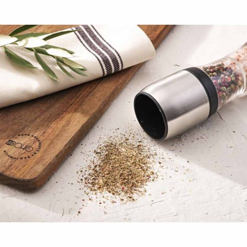 Praktické použití: Ideální pro mletí všech druhů zrnek pepře, soli nebo jiného koření.