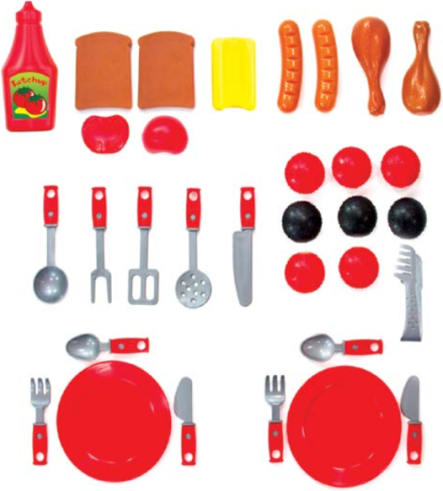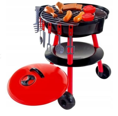 Připrav pro své kamarády úžasné grilované pochoutky! Gril v realistickém provedení je vybaven víkem, praktickou policí a sadou 30 doplňků. Sada obsahuje: - kuřecí kousky - kečup - klobásy - rajčata - pečivo - uhlí - talíře - příbory - sada kuchyňských potřeb zavěšených na háčcích kolem grilu. Gril je skvělý na zahradu, ale lze ho použít i uvnitř. Vyrobeno z vysoce kvalitního plastu. Rozměry grilu: 51 x 41 x 39 cm Vhodné pro děti od 1 let.