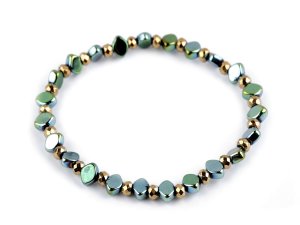 Elegantní náramek je vyrobený z broušených korálků pokoveného hematitu.