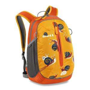 Anatomicky tvarovaný dětský batoh Boll Roo v žluté barvě se šnečky o objemu 12 l je speciálně navržený pro děti od výšky 105 cm.