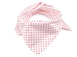 Bavlněný šátek s drobnými puntíky můžete nosit nejen kolem krku, ale i jako pokrývku hlavy.