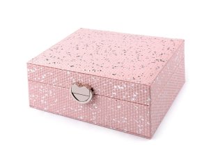 Šperkovnice vás na první pohled nadchne svým zajímavým povrchem se strukturou drobných 3D kostiček a metalickým potiskem.